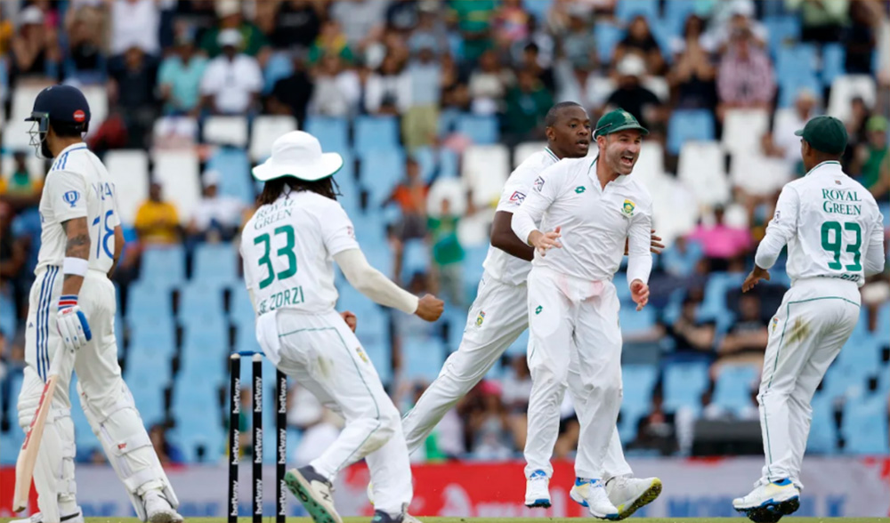 योसंगै भारतले पहिलो इनिंगमा ९८ रनको अग्रता लिएको छ । अब दक्षिण अफ्रीकाले आजै आफ्नो दोस्रो इनिंग शुरु गर्ने छ ।