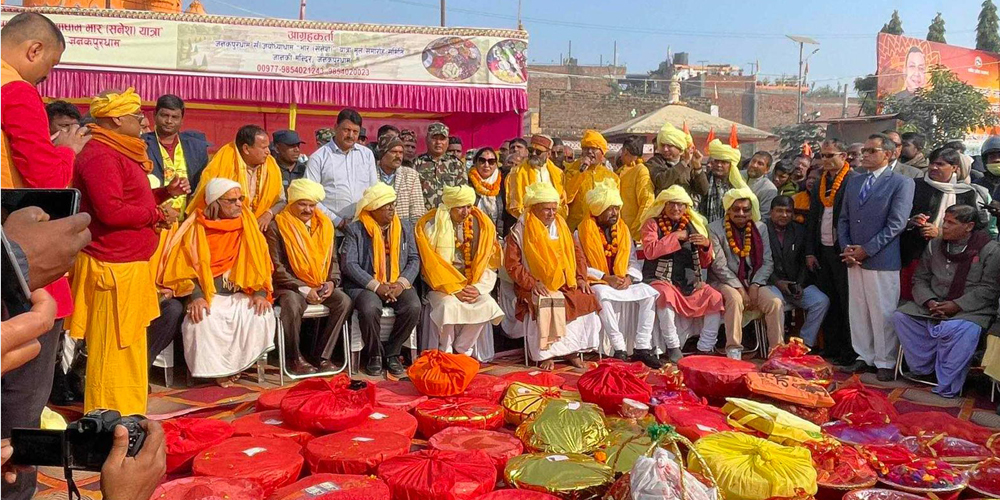 जानकी मन्दिरको अगुवाइमा विशेष यात्रासहित भार लिएर यहाँबाट यात्रा प्रारम्भ भएको जानकी मन्दिरका सहमहन्थ रामरोशन दास वैष्णवले जानकारी दिए ।