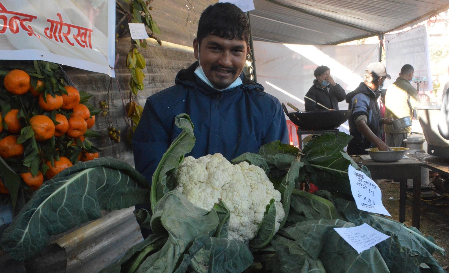 “भक्तपुरे जातको काउलीलाई यो वर्ष हामी आफैले क्रस गरेर बीउ उत्पादन गरी लगाएका हौँ”, उनले भने, “भदौमा रोपेको काउली अहिले टिपेर पूरै जोख्दा ११ केजी रहेको पाइयो । मेलामा ज्ञान केन्द्रले प्रदर्शनमा राखेको उक्त काउली हेर्नेका हाल भीड नै लागेको छ ।