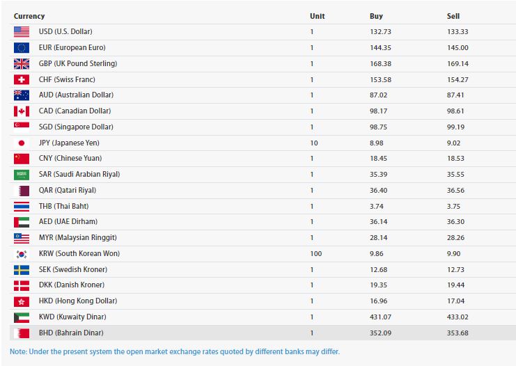 यस्तै, आज अमेरिकी डलरको खरिद दर १३२ रुपैयाँ ७३ पैसा र बिक्री दर १३३ रुपैयाँ ३३ पैसा रहेको छ । युरो एकको खरिद दर १४४ रुपैयाँ ३५ पैसा र बिक्री दर १४५ रुपैयाँ ०० पैसा रहेको छ।