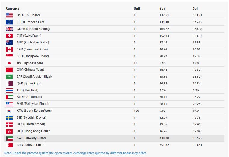 यस्तै, आज अमेरिकी डलरको खरिद दर १३२ रुपैयाँ ६१ पैसा र बिक्री दर १३३ रुपैयाँ २१ पैसा रहेको छ । युरो एकको खरिद दर १४४ रुपैयाँ ४० पैसा र बिक्री दर १४५ रुपैयाँ ०५ पैसा रहेको छ।