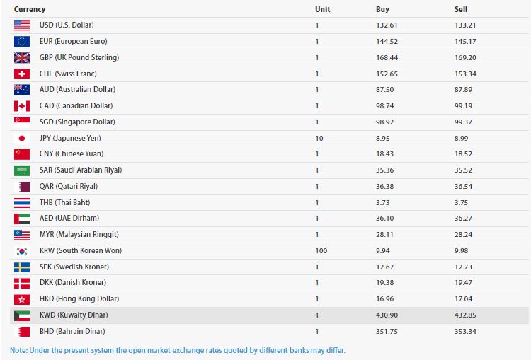 यसैगरी, साउदी रियाल १ को खरिद दर ३५ रुपैयाँ ३६ पैसा छ भने बिक्री दर ३५ रुपैयाँ ५२ पैसा छ। कतारी रियाल १ को खरिद दर ३६ रुपैयाँ ३८ पैसा छ भने बिक्री दर ३६ रुपैयाँ ५४ पैसा छ।