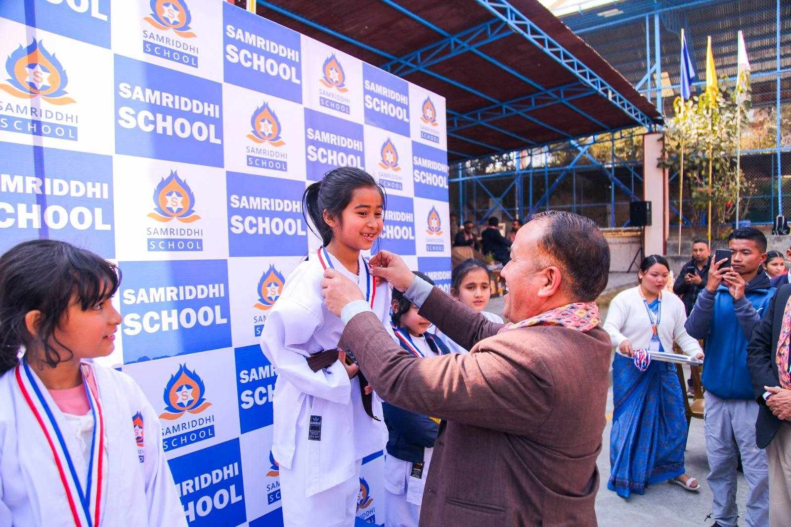 काठमाडौं- समृद्धि अन्तरविद्यालय राष्ट्रिय गोजुरियो कराते च्याम्पियनसिप शुक्रबार समृद्धि स्कुल, स्वयम्भूमा सम्पन्न भएको छ । एक दिने प्रतियोगिताको प्रमुख अतिथि बाग्मती प्रदेशका संस्कृति पर्यटन तथा सहकारीमन्त्री पुकार महर्जनले उद्घाटन गरे ।