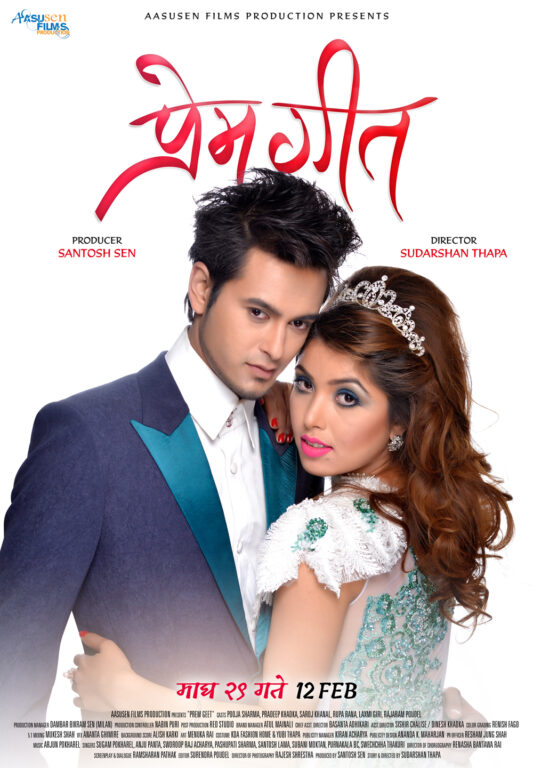 सन् २०१५ मा प्रदर्शनमा आएको फिल्म ‘प्रेम गीत’ मा प्रदीप खड्का र पूजा शर्माको शीर्ष भूमिका छ । प्रेम र गीत दुई पात्रको कथानक समेटिएको यो फिल्मलाई सुदर्शन थापाले निर्देशन गरेका हुन् भने सन्तोष सेनले निर्माण गरेका हुन् ।