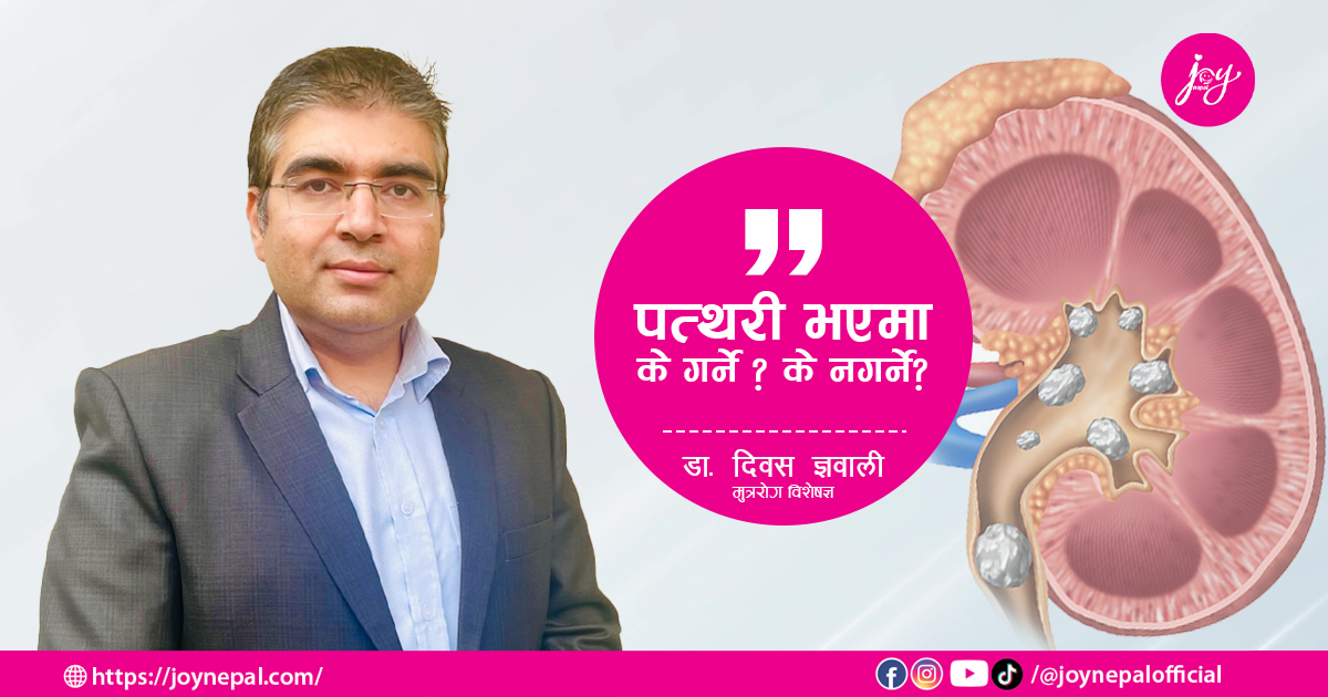 पत्थरी कस्तो रोग हो ? यो रोग लाग्ने मुख्य कारण के हो? साथै यसका उपचार विधि के–कस्ता रहेका छन् भन्ने सम्बन्धमा मेट्रो अस्पतालमा कार्यरत मुत्ररोग विशेषज्ञ डा. दिवस ज्ञवालीसँग जोय नेपालका लागि सुस्मिता फुयाँलले लिएको अन्तर्वार्ताको सम्पादित अंश: