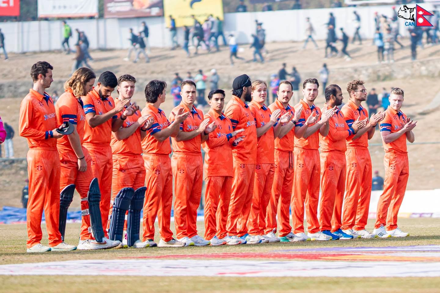 टीयु क्रिकेट मैदानमा भएको टसमा नेदरल्यान्ड्सका स्कट एडवार्ड्सले टस जितेर पहिला फिल्डिङ रोजेका हुन् र उनले टोलीमा दुई परिवर्तन गरेका छन् ।