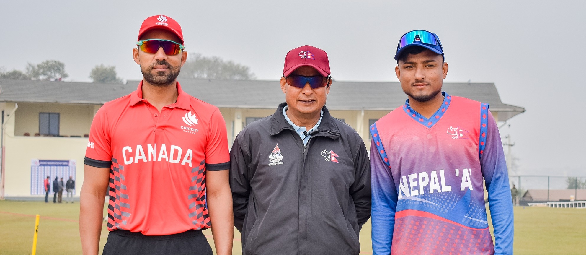 काठमाडौँ – एकदिवसीय क्रिकेट शृङ्खलाको दोस्रो अभ्यास खेलमा नेपाल–ए ले क्यानडा–११ विरुद्ध पहिले फिल्डिङ गर्दैछ ।