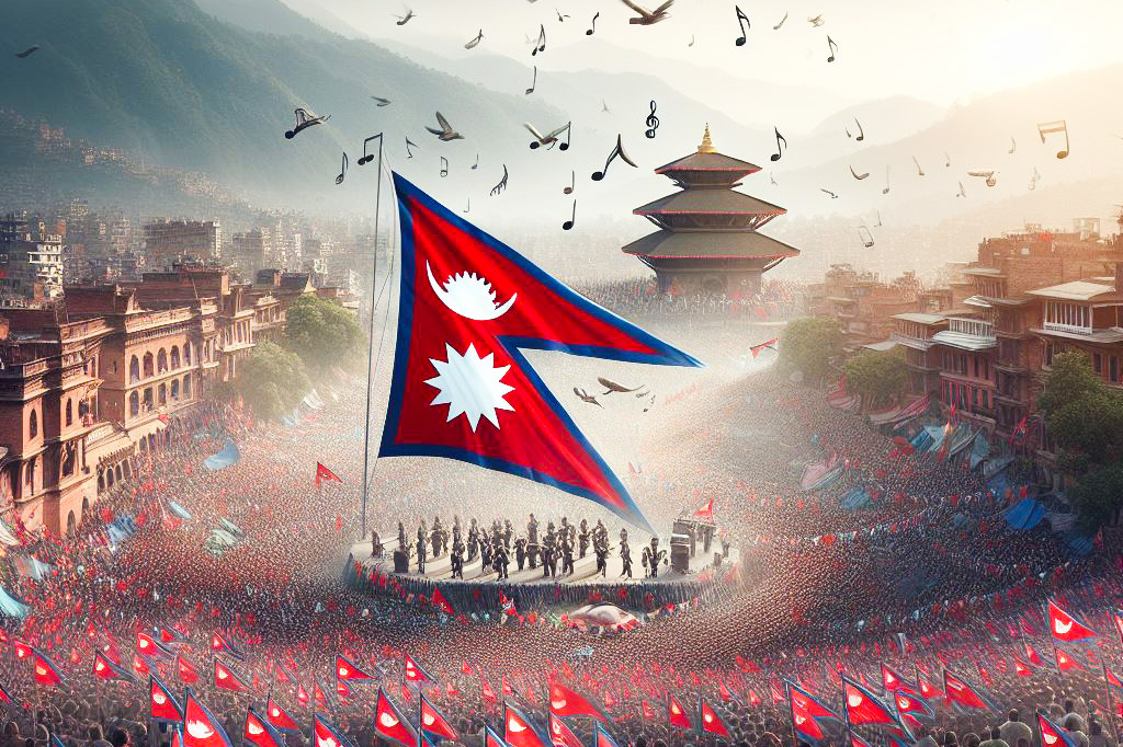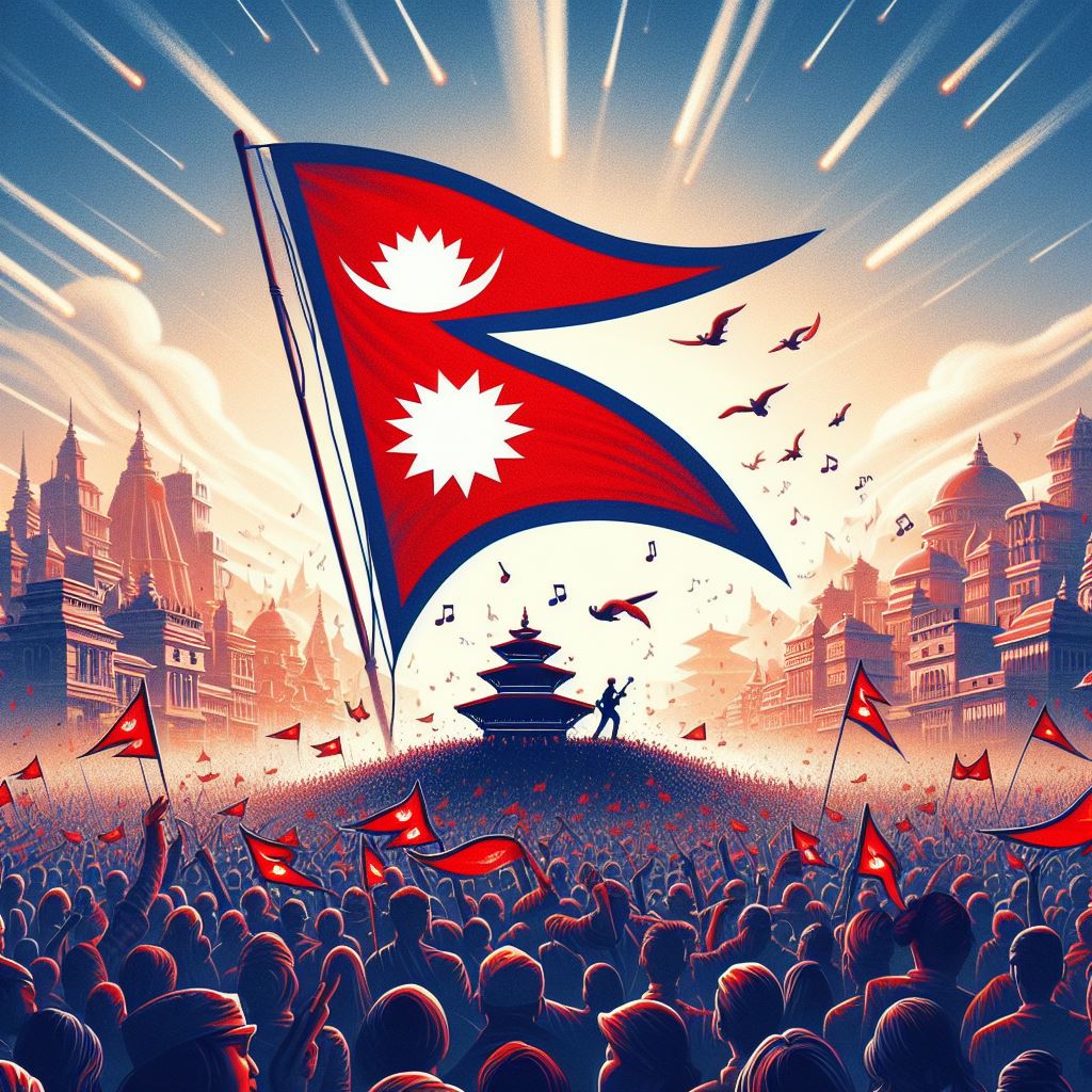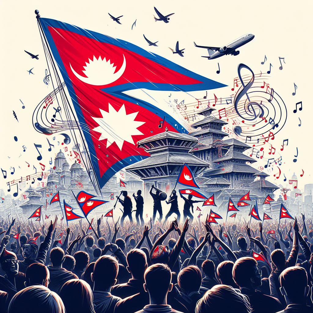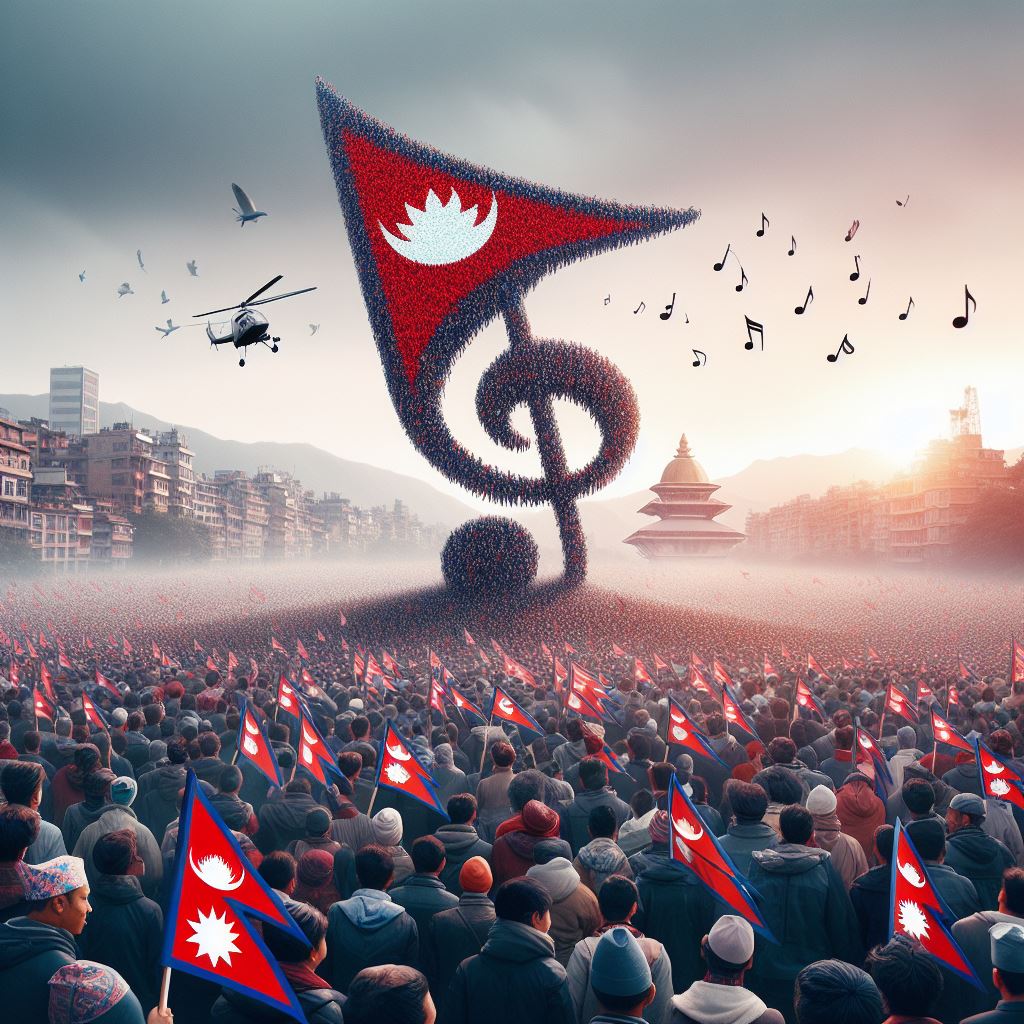 ती गीतमा देशको गाथा र हिमालका गौरवका सन्दर्भ समेटिएका हुन्थे । नेपाललाई सिङ्गो नेपालीको साझा आँगन हो भनेर बुझाइन्थ्यो । विभिन्न महोत्सव तथा कन्सर्टमा पनि कलाकारले जोशका साथ गाउँथे– रातो र चन्द्र सूर्य जंगी निशान हाम्रो ।