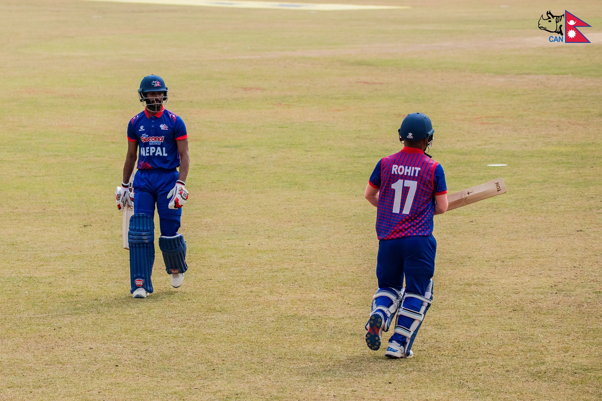कीर्तिपुरस्थित टीयू मैदानमा जारी खेलमा नेपालका कप्तान रोहित पौडेल शून्य रनमा आउट भएका छन् । खेलको २३ ओभर २ बलमा नामिबियाका जेन निकोल लोफ्टी इटनको बलमा उनी बर्नाड शोल्जबाट क्याच आउट भए ।
