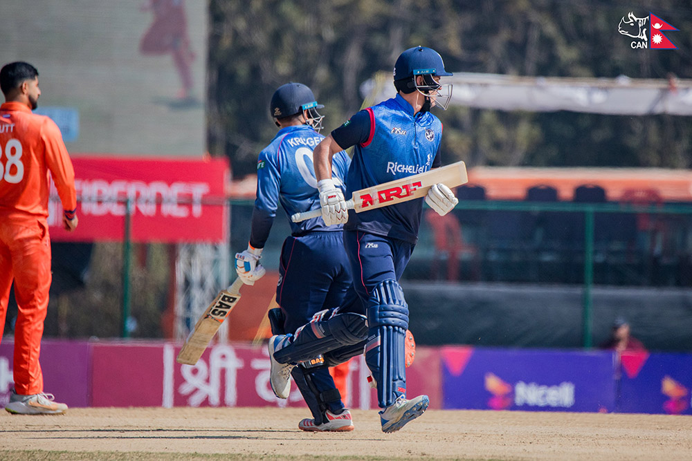 काठमाडौं – नामिबियाले नेदरल्याण्डसलाई २०४ रनको लक्ष्य दिएको छ । आइसीसी क्रिकेट विश्वकप लिग-२ अन्तर्गतको खेलमा टस हारेर पहिला ब्याटिङ गरेको नामिबियाले ४१.३ ओभरमा अल आउट हुदै २०३ रन बनाएको हो ।