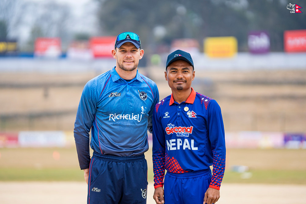 काठमाडौँ– नामिबियाले नेपाललाई २०७ रनको लक्ष्य दिएको छ । त्रिकोणात्मक टी-२० सिरिजको पहिलो खेलमा टस जितेर पहिला ब्याटिङ गर्दै नामिबियाले २० ओभरमा ४ विकेट गुमाएर २०६ रन बनाएको हो ।