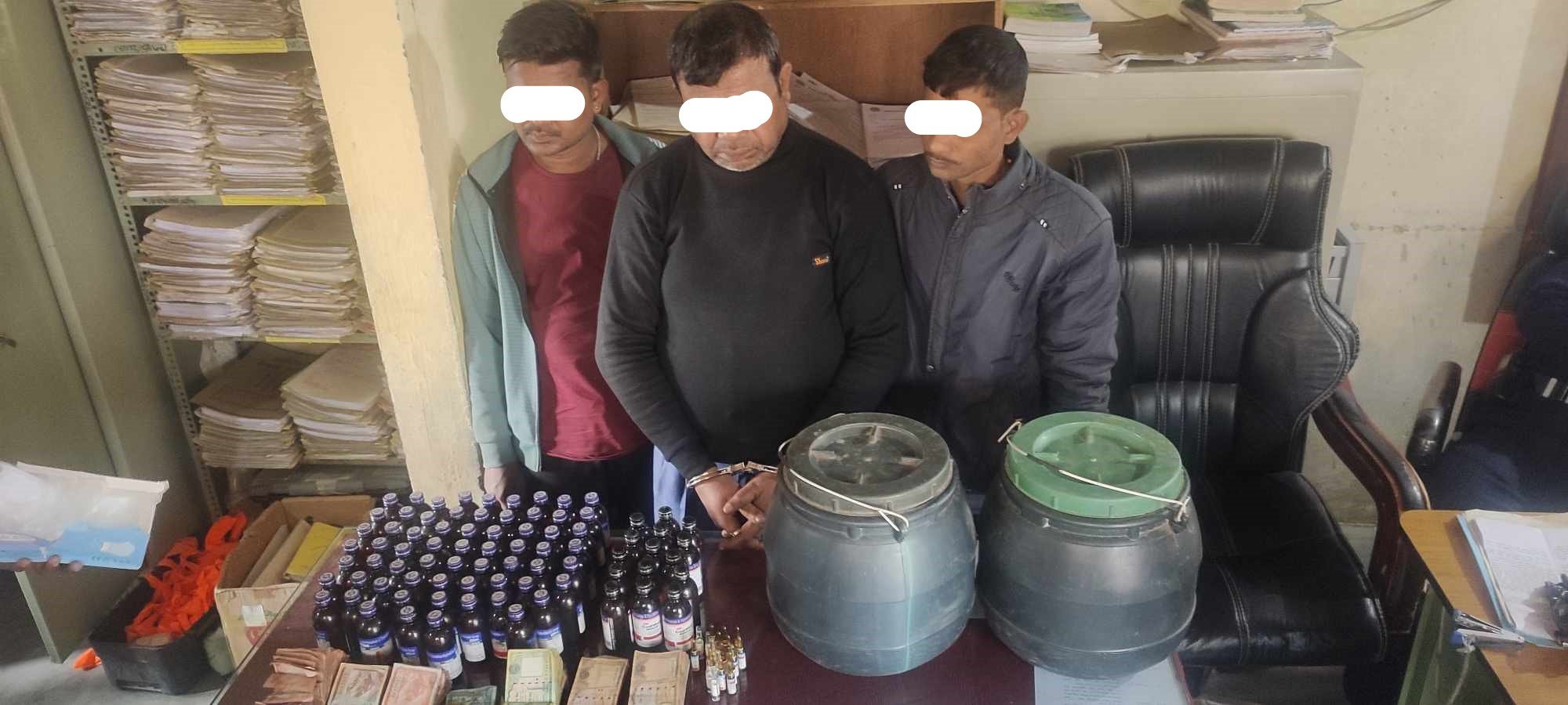 विशेष सूचनाको आधारमा लागूऔषध ब्युरो जनकपुर शाखा कार्यालय गोलबजार र इलाका प्रहरी कार्यालय लहान सिरहाबाट खटिएको संयुक्त टोलीले उनीहरूको साथबाट कोडबिल सय एमएलको १५ बोतल, वीक्सडीन सय एमएलको ६५ बोतल, डाईजीफाम ६ एम्पुल, फेनारगन ७ एम्पुल र नुरफ्रेन ६ एम्पुल बरामद गरेको जिल्ला प्रहरी कार्यालय सिरहाले जनाएको छ।