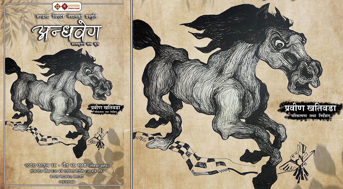 काठमाडौँ – आज शुक्रबारदेखि मण्डला थिएटरमा नयाँ नाटक मञ्चन हुने भएको छ । प्रवीण खतिवडाको परिकल्पना र निर्देशनमा नाटक ‘अन्धवेग’ मञ्चन हुन लागेको हो ।