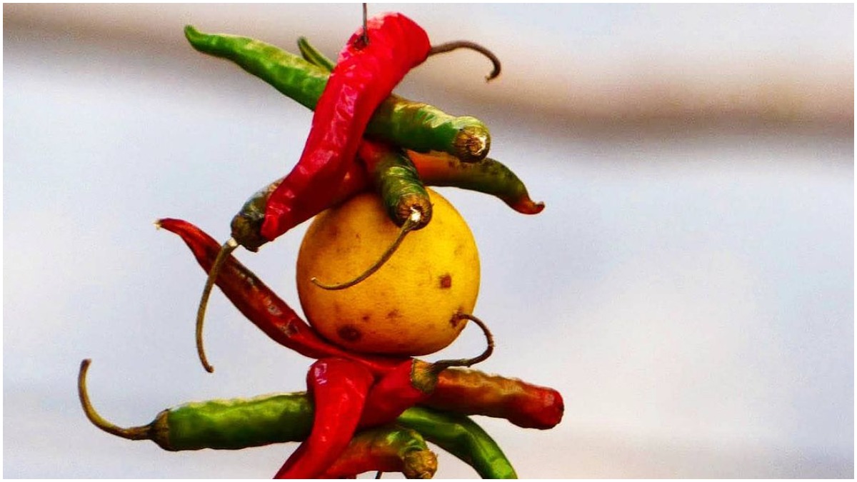 काठमाडौँ – के तपाई घर बाहिर वा पसल बाहिर कागती र खुर्सानीलाई बाँधेर झुण्ड्याउने गरेको देख्नु भएको छ ? यदि देख्नु भएको छैन् भने, प्रायः मानिसहरूले आफ्नो घर र पसल बाहिर कागती र खुर्सानी झुण्ड्याउँछन्। यसलाई झुण्ड्याउँदा वा लगाउनाले नराम्रो नजर नलाग्ने जनविश्वास रहेको छ ।