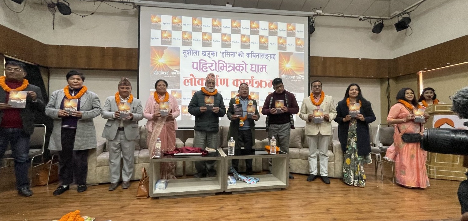 काठमाडौँ – कवि सुशीला खड्का ‘हसिना’द्वारा लिखित कविता सङ्ग्रह ‘पहिरोभित्रको घाम’ लोकार्पण गरिएको छ । आज यहाँ आयोजित कार्यक्रममा नेपाल प्रज्ञा–प्रतिष्ठानका कुलपति भूपाल राईले उक्त कविता सङ्ग्रहको विमोचन गरेका हुन् ।