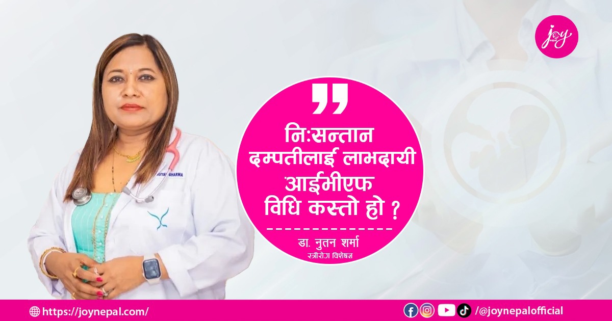 यो विधि के हो? यो कत्तिको सुरक्षित छ? आईभीएफ गरेपछि गर्भाधान रहने सम्भावना कत्तिको छ? लगायतका विषयमा स्त्रीरोग विशेषज्ञ डाक्टर नुतन शर्मासँग सुस्मिता फुयाँलले गरेको कुराकानीः