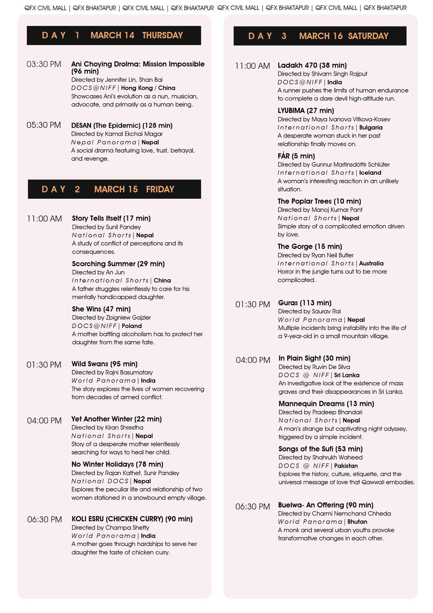काठमाडौँ– नेपाल इन्टरनेसनल फिल्म फेस्टिभल (निफ) मा प्रदर्शन गरिने फिल्मको सूची सार्वजनिक गरिएको छ । चैत्र १ गतेदेखि ५ गतेसम्म हुने फेस्टिभलमा ४० देशका ८८ फिल्म देखाइनेछ ।