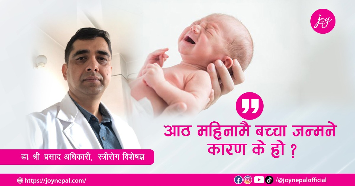 यो बुझाइमा कतिको सत्यता छ? के कारणले गर्दा बच्चा नौ महिना अगावै जन्मने गर्छन्? यस्ता बच्चाको स्याहार कसरी गर्ने? समयअगावै जन्मिएका बच्चाको मृत्युदर कस्तो छ र भविष्यमा यस्ता बच्चाको स्वास्थ्यमा समस्यामा हुने खतरा कत्तिको हुन्छ? लगायतका विषयमा स्त्रीरोग विशेषज्ञ डा. श्री प्रसाद अधिकारीसँग जोय नेपालका लागि सुस्मिता फुयाँलले गरेको कुराकानीको सम्पादित अंश: