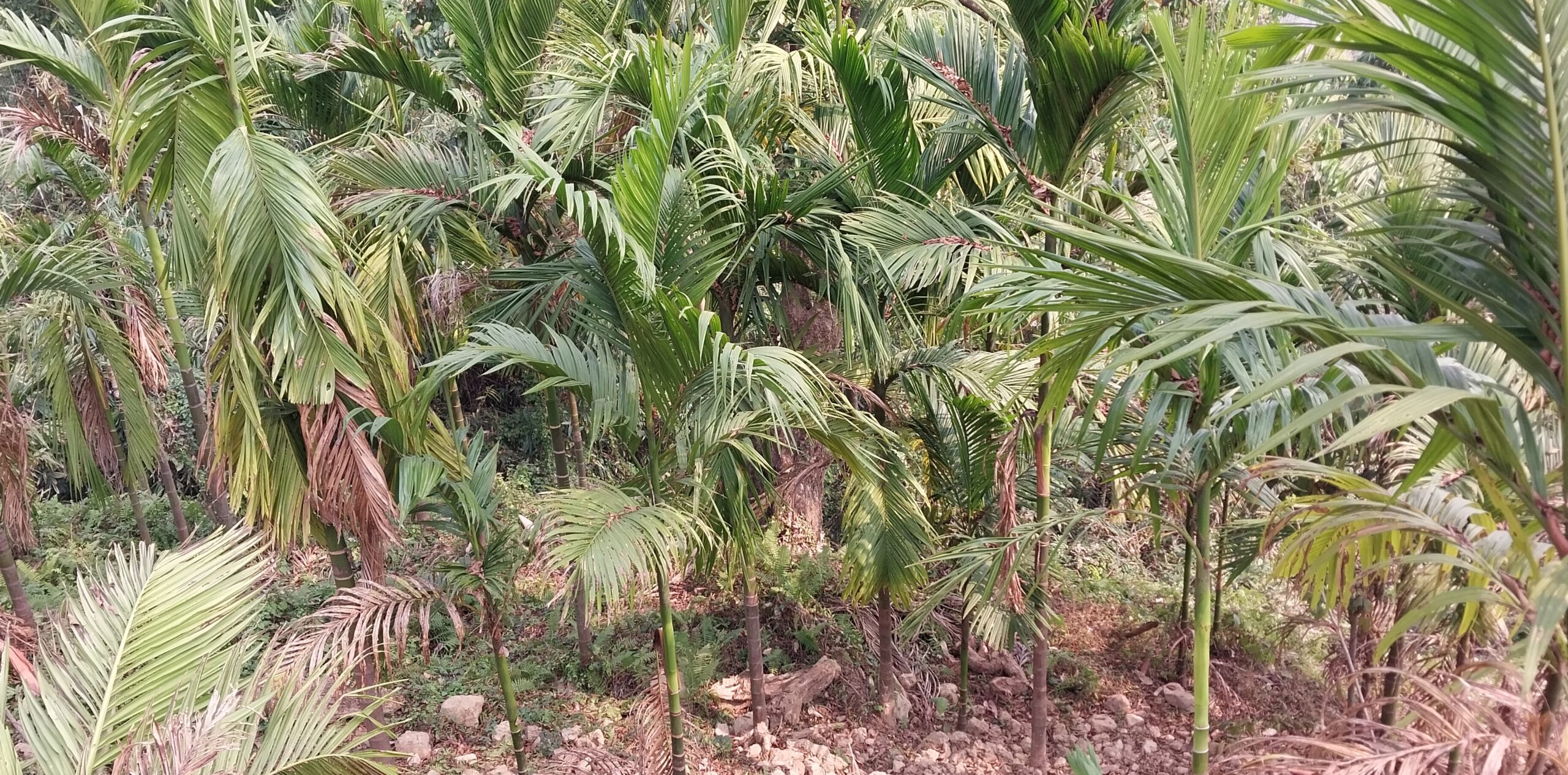 “मैले १५ रोपनी जग्गामा एक हजार बोट सुपारी रोपेको छु, बिरुवा हुर्कँदै छन्”, उनले भने, “नयाँ बगान भएकाले फल भने लागेको छैन ।”