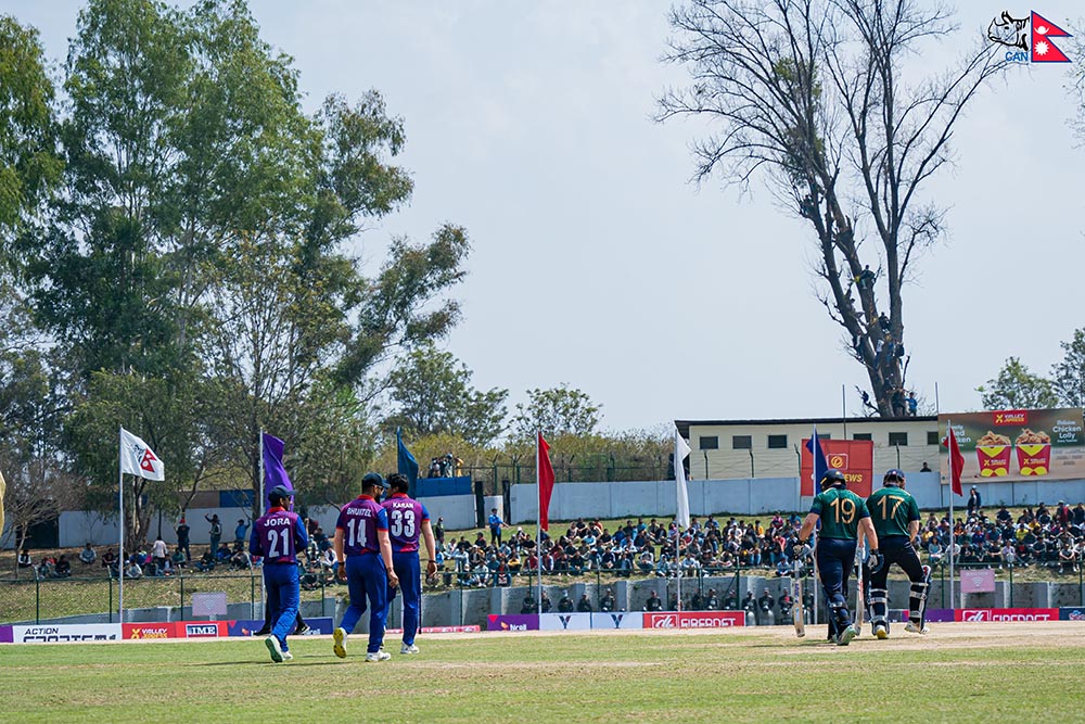 त्यसैगरी नेपाली बलर ललित राजबंशी, गुलशन झा र कुशल भुर्तेलले २-२ विकेट लिए भने करण केसी र कुशल मल्लले एक/एक विकेट लिए ।