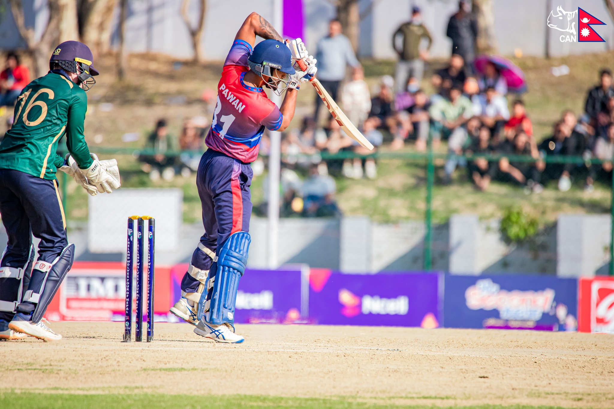 आयरल्याण्ड वोल्भ्सका लागि कप्तान निल रकले सर्बाधिक ७१ रन बनाएका थिए भने पिटर मूरले सर्बाधिक ६५ रन बनाएका थिए । त्यसैगरी जेम्स म्याकोलमले २६, फिओन हान्डले १९, रोज अदैरले १७ रन बनाएका थिए । त्यसैगरी नेपाली बलर सागर ढकालले ३ विकेट लिए भने कमल सिंह ऐरी र पवन सराफले एक एक विकेट लिएका थिए ।