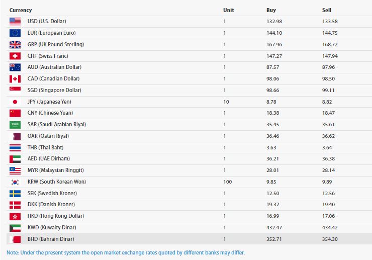 अमेरिकी डलर एकको खरिद दर १३२ रुपैयाँ ९८ पैसा र बिक्री दर १३३ रुपैयाँ ५८ पैसा पुगेको छ। युरो एकको खरिद दर १४४ रुपैयाँ १० पैसा र बिक्री दर १४४ रुपैयाँ ७५ पैसा रहेको छ।