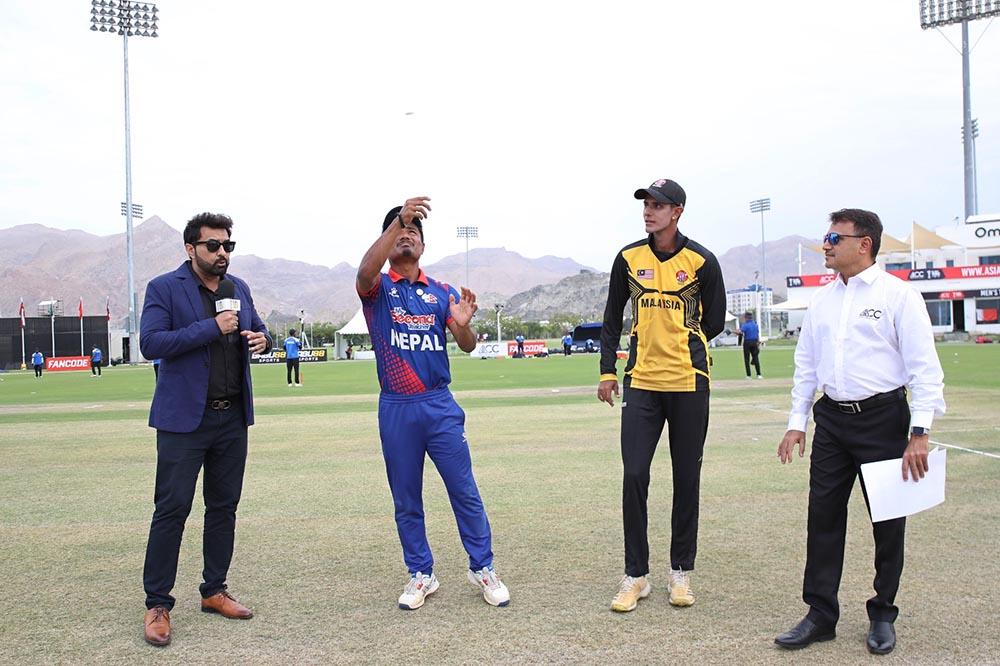 मलेसियाका कप्तान भिरनदीप सिंहले टस जितेर पहिला ब्याटिंग गर्ने निर्णय गरेका छन् । योसँगै नेपालले पहिला बलिङ गर्ने भएको छ ।