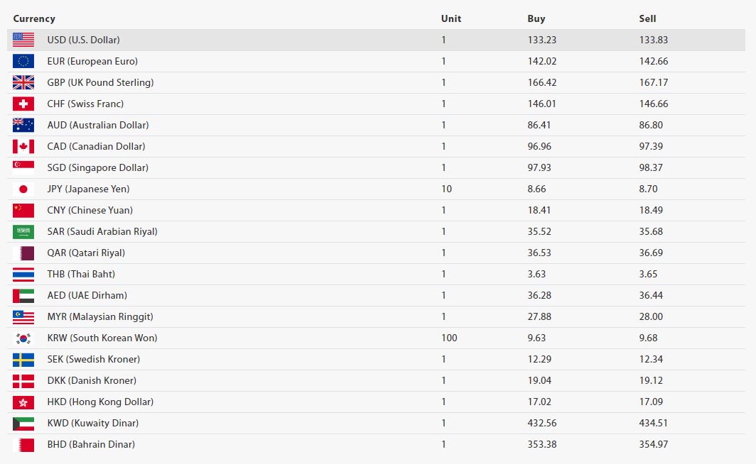 राष्ट्र बैंकका अनुसार आज अमेरिकी डलर एकको खरिद दर १३३ रुपैयाँ २३ पैसा र बिक्री दर १३३ रुपैयाँ ८३ पैसा रहेको छ । त्यस्तै युरो एकको खरिद दर १४२ रुपैयाँ ०२ पैसा र बिक्री दर १४२ रुपैयाँ ६६ पैसा रहेको राष्ट्र बैंकले जनाएको छ ।