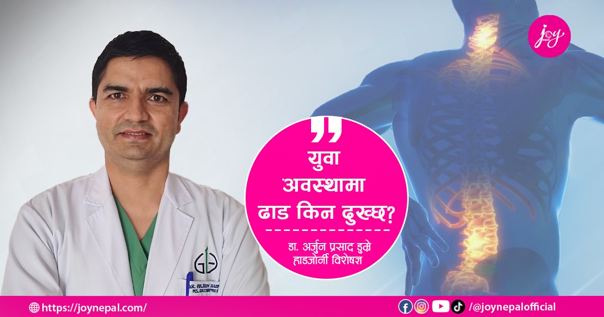 युवापुस्तामा ढाड दुखाइको समस्या बढ्नुको मुख्य कारण के हो ? यस्तो समस्याबाट कसरी छुटकारा पाउने? लगायतका विषयमा हाडजोर्नी विशेषज्ञ डा. अर्जुन प्रसाद डुम्रेसँग जोय नेपालका लागि सुस्मिता फुयाँलले गरेको कुराकानी: