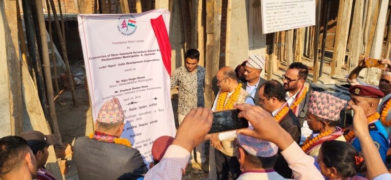 बिहीबार शैल्यशिखर नगरपालिकाका मेयर विजय सिंह धामी र भारतीय राजदूतावास काठमाडौँका द्वितीय सचिव प्रशान्त कुमार सोनाले नेपाल–भारत विकास सहकार्य अन्तर्गत बन्न लागेको विद्यालय भवनको एक कार्यक्रमका बीच शिलान्यास गरेका हुन् ।