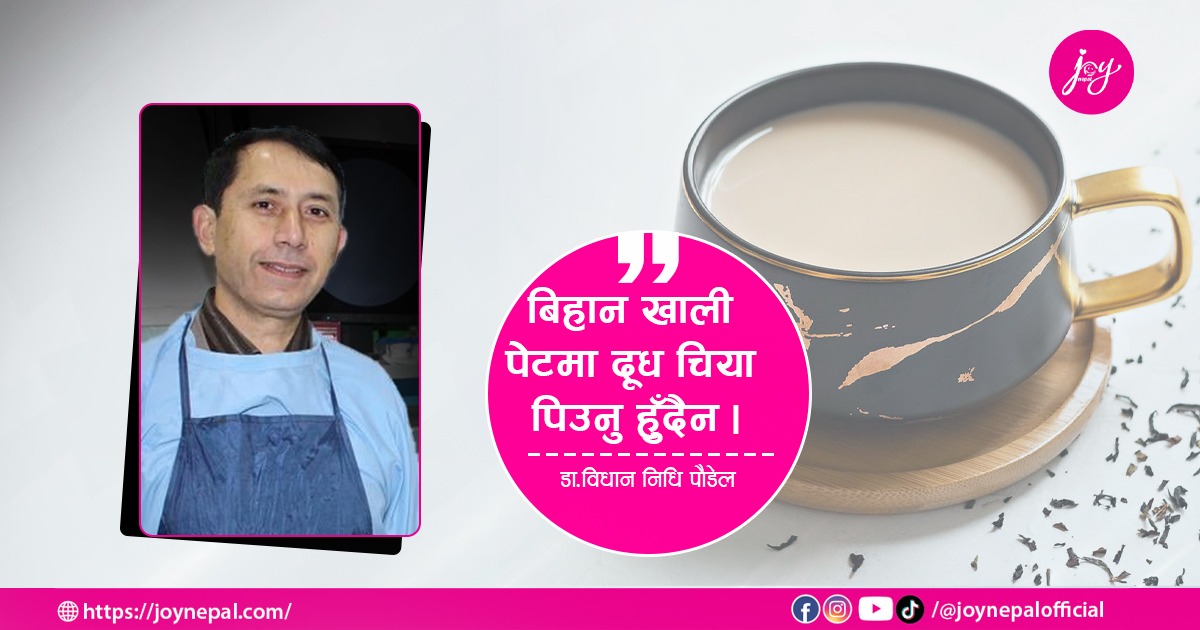यसै सन्दर्भमा खाली पेटमा दूध चिया पिउँदा के हुन्छ ? दूध चिया पिए पनि कति मात्रामा पिउँदा असर गर्दैन ? लगायतका प्रश्नहरुमा केन्द्रित भएर वरिष्ठ पेट रोग विशेषज्ञ डा. विधान निधि पौडेलसँग जोय नेपालका लागि सुस्मिता फुयाँलले गरेको कुराकानी: