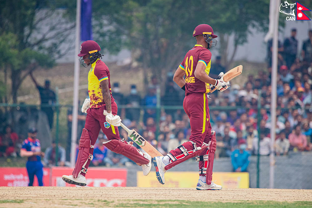 वेस्ट इन्डिजका लागि कप्तान रोस्टन चेजले सर्वाधिक ७४ रन बनाए भने एलिक अथानाजेले ४७ रन बनाए । त्यस्तै किची कार्टीले ३८, आन्द्रे फ्लेचरले १३ र काडिम आलेयनेले १४ रन बनाएका थिए ।