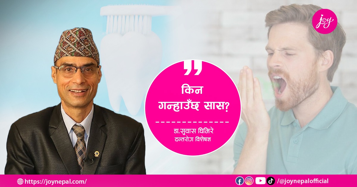 सास गन्हाउने समस्या के कारणले हुन्छ ? यस्तो समस्याबाट कसरी उन्मुक्क्ति पाउने सकिन्छ ? लगायतका विषयमा केन्द्रित भएर दन्तरोग विशेषज्ञ डा.सुवास घिमिरेसँग जोय नेपालका लागि सुस्मिता फुयाँलले गरेको कुराकानी: