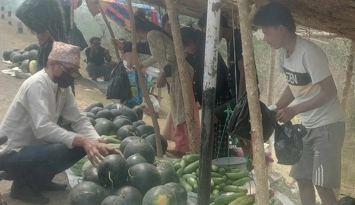 कञ्चनपुर – पूर्वपश्चिम महेन्द्र राजमार्गको छेउमा साना छाप्रा र छन् । छाप्रामा तरबुजा राखेर कोही ग्राहक कुरिरहेका छन् भने कोही बिक्रीमा व्यस्त छन् ।
