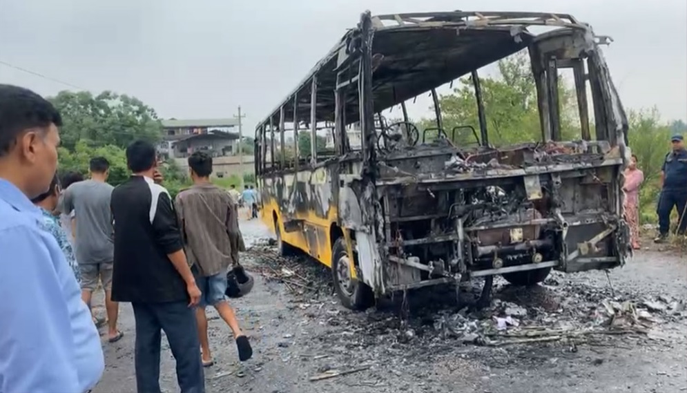 आगलागीबाट बस पूर्ण रूपमा जलेको छ । तीन वटा मोटरसाइकलमा आएका ६ जनाको समूहले बसमा पेट्रोल छर्किएर आगो लगाएको प्रत्यक्षदर्शीले जनाएका छन् ।