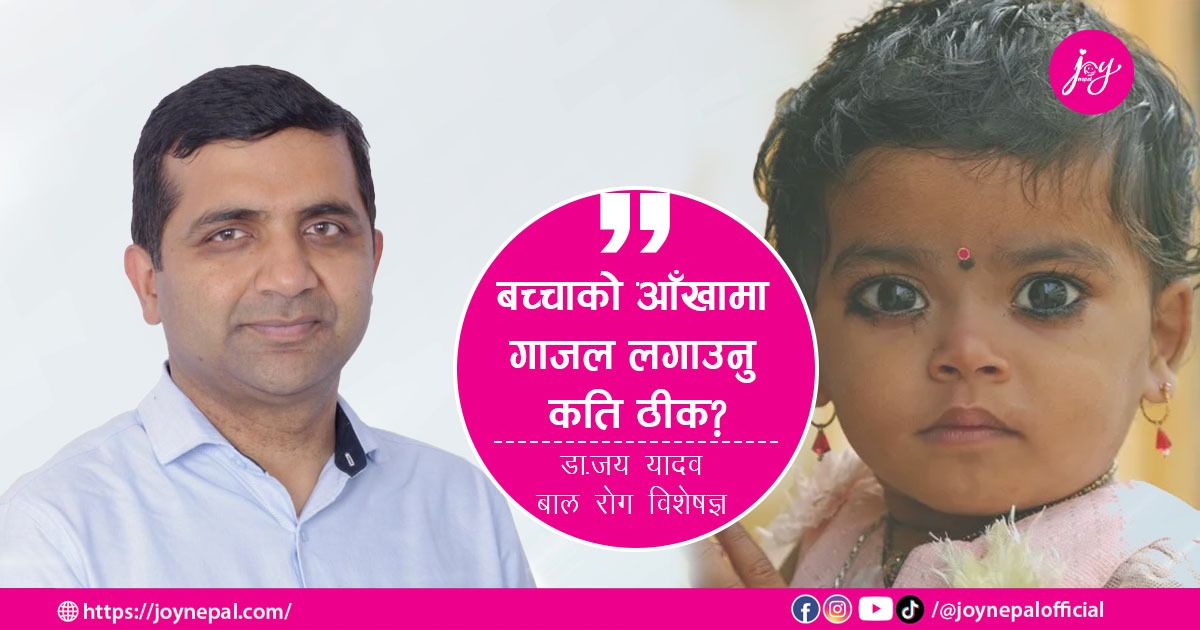 कतिपयले भने केही नबुझेपनि गाजल लगाएपछि बच्चाहरु राम्रा र चिटिक्क देखिन्छन् भन्ने मनासायले शिशुको आँखामा गाजल लगाइदिने गरेको पाइन्छ । के नवजात शिशुलाई आँखाभरी गाजल लगाइदिनु सही हो ? यसले कस्तो असर पार्छ ? गाजल लगाउनु हुन्छ या हुँदैन भन्ने प्रश्नहरु समेट्दै बाल रोग विशेषज्ञ डा. जय यादवसँग जोय नेपालका लागि सुस्मिता फुयाँलले गरेको कुराकानीको सम्पादित अंशः