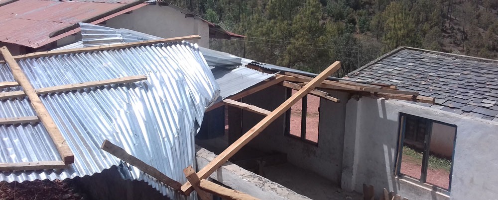 हुरीबतासले विद्यालयको छानो उडाएपछि पठनपाठनमा समस्या