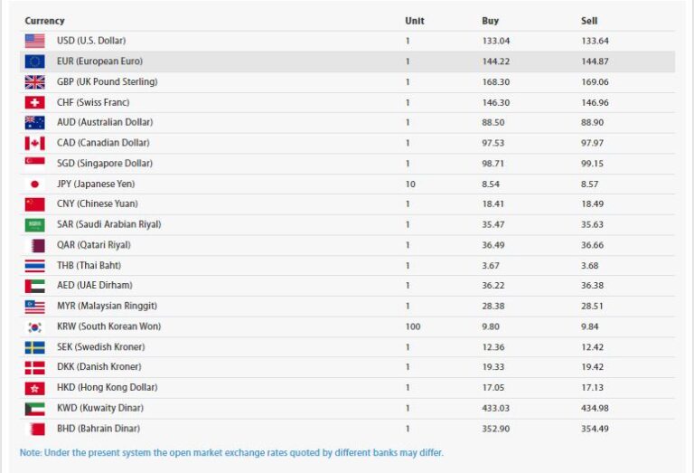 त्यस्तै भारतीय रुपैयाँ एक सयको खरिद दर १६० रुपैयाँ रहेको छ भने बिक्री दर १६० रुपैयाँ १५ पैसा रहेको भने युरो एकको खरिद दर १४४ रुपैयाँ २२ पैसा र बिक्री दर १४४ रुपैयाँ ८७ पैसा रहेको छ।