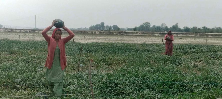“वर्षौँदेखि बगरमा खेती गर्दै आएका छौँ । माघदेखि जेठसम्म बगरमा खेती गर्छौँ, अरु समयमा मजदुरी”, उनले भने, “जङ्गली जनावर र चोरीबाट उत्पादन जोगाउन बगरमा बनाइएको छाप्रोमा बास बस्ने गरेका छौँ ।”