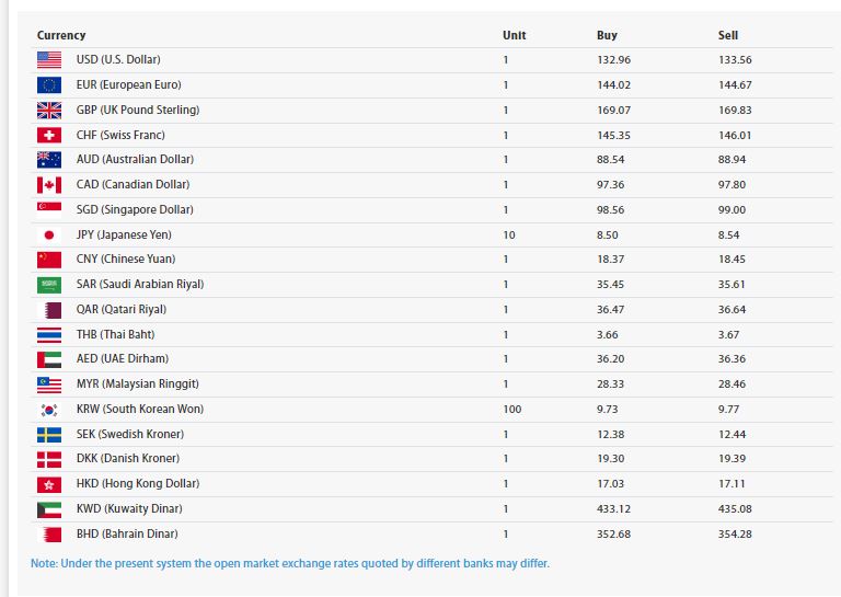 अमेरिकी डलर एकको खरिद दर १३२ रुपैयाँ ९६ पैसा र बिक्री दर १३३ रुपैयाँ ५६ पैसा पुगेको छ। युरो एकको खरिद दर १४४ रुपैयाँ ०२ पैसा र बिक्री दर १४४ रुपैयाँ ६७ पैसा रहेको छ।