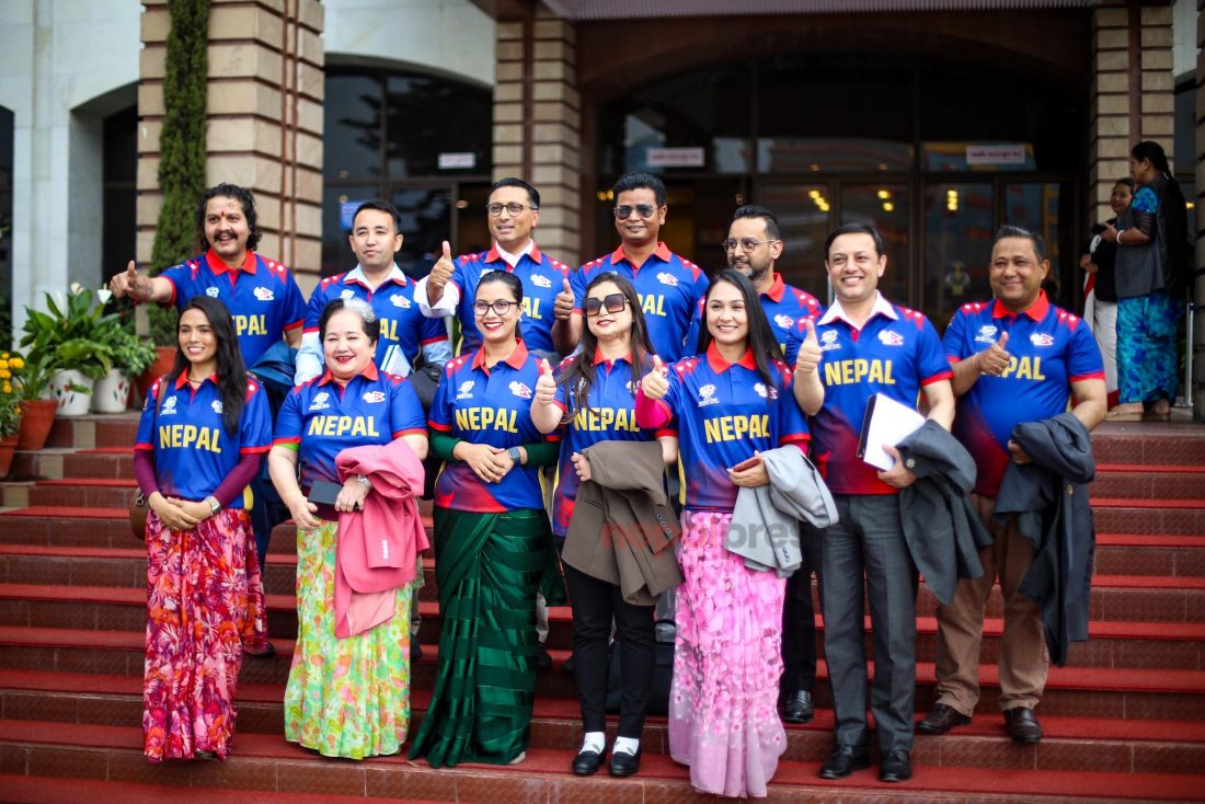 टी–२० विश्वकप खेल्न अमेरिका पुगेको नेपाली टीमको समर्थनमा उनीहरूले जर्सी लगाएका हुन् । बैठक प्रवेश गर्नुअघि उनीहरूले सामूहिक फोटो खिचाएका थिए ।
