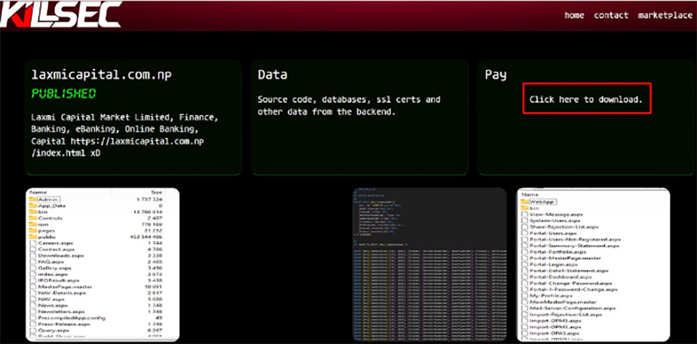 बिहीबार बिहान ह्याकरले डार्क वेबमा लक्ष्मी क्यापिटलको डेटा सार्वजनिक गरिदिएको छ । जसमा क्यापिटलको सोर्स कोड, डेटावेस, एसएसएल सर्टिफिकेट, ब्याकइन्डको अन्य डेटा र लक्ष्मी क्यापिटलका ग्राहकको नागरिकता तथा अन्य संवेदनशील विवरण राखिएको ह्याकरको दाबी छ ।