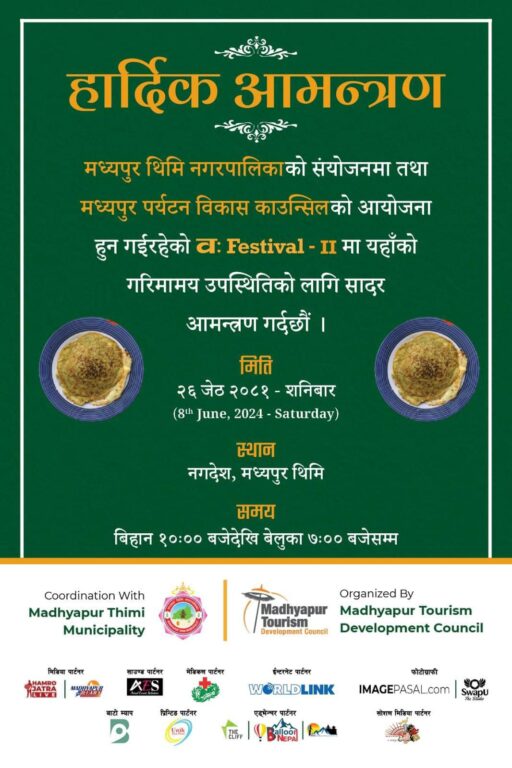 मध्यपुर थिमि नगरपालिकाको सहयोगमा मध्यपुर पर्यटन विकास समिति आयोजनामा महोत्सव हुने भएको हो । महोत्सव दोश्रो पटक हुन लागेको हो ।
