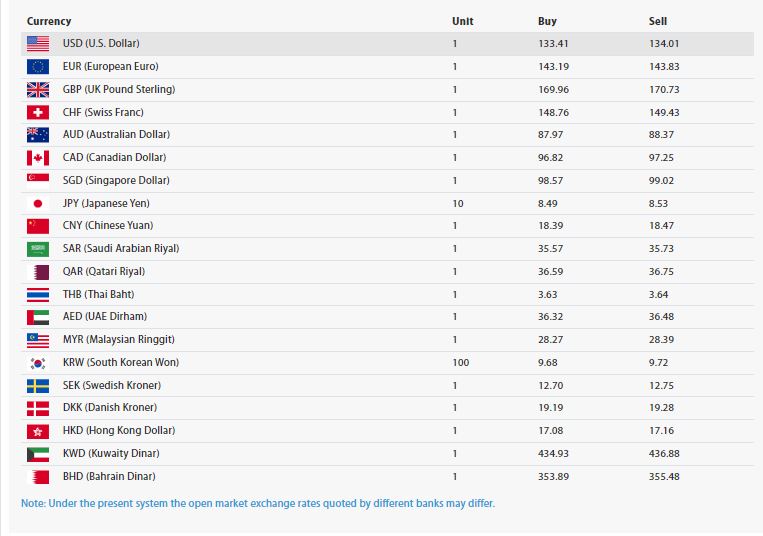 बुधबार अमेरिकी डलर, कतारी रियाल र बेलायती पाउण्डको विनिमयदर बढ्दा युरो सामान्य घटेको छ । अमेरिकी डलर एकको खरिद दर १३३ रुपैयाँ ४१ पैसा र बिक्री दर १३४ रुपैयाँ ०१ पैसा पुगेको छ।