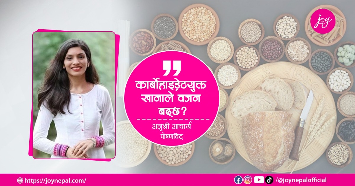 मोटोपनबाट छुटकारा पाउन कार्बोहाइड्रेटयुक्त खानेकुरा छाड्न आवश्यक छ कि छैन रु चामल, आलुको सेवन गर्ने नहुने हो या मात्रा मिलाउनुपर्ने हो रु शरीरका लागि कार्बोहाइड्रेट कति जरुरी छ रु कार्बोहाइड्रेटले शरीरमा के काम गर्छ रु लगायतका प्रश्नहरुमा केन्द्रित रहेर पोषणविद् अनुश्री आचार्यसँग जोय नेपालका लागि सुस्मिता फुयाँलले गरेको कुराकानी: