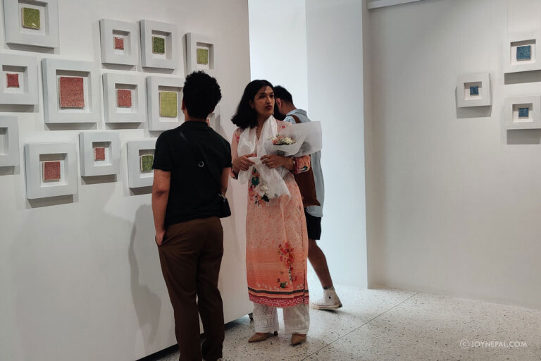असार २३ गतेसम्म जारी रहने प्रदर्शनीको क्युरेसन सन्जिव महर्जनले गरेका हुन् । प्रदर्शनीमा कलाकारहरु सम्राट जोशी, सुमना शाक्य, प्रतिमा थकाली, सविता ज्ञवाली, सगुन थापा, एश्वर्य शाक्य, अंशद सुनुवार, आभास नेमकुल, धिरज मानन्धर र ओनासिमोस थुलुङ राई सहभागी छन् ।