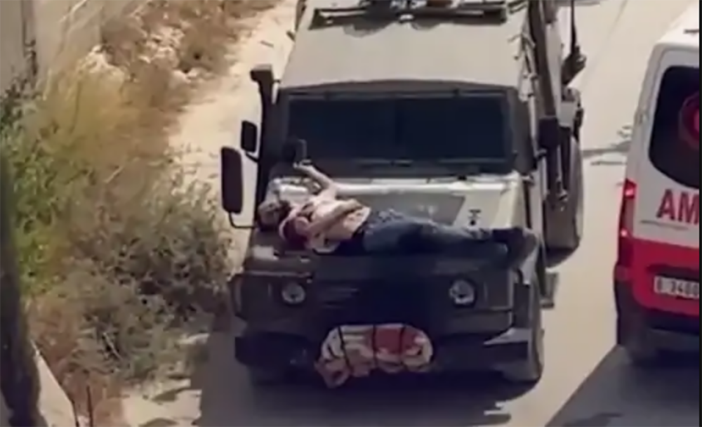 घाइते प्यालेस्टिनीका परिवारले इजरायली सेनासँग एम्बुलेन्स मागेको बताएका छन् । तर उनीहरूले प्यालेस्टिनीलाई जिपको बोनेटमा बाँधेर त्यहाँबाट भागे । यसअघि शनिबार केही बन्दुकधारीले वेस्ट बैंकको कल्किल्या क्षेत्रमा एक इजरायली नागरिकको हत्या गरेका थिए । त्यसपछि उनको गाडीमा आगजनी गरिएको थियो । यो कुरा बाहिर आएपछि ठूलो संख्यामा इजरायली सैनिक त्यहाँ पुगेका थिए ।