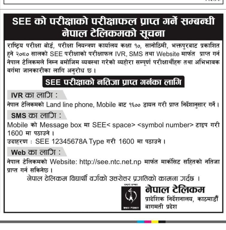 नतिजा हेर्न सक्ने माध्यमहरु निम्नानुसार छन्ः