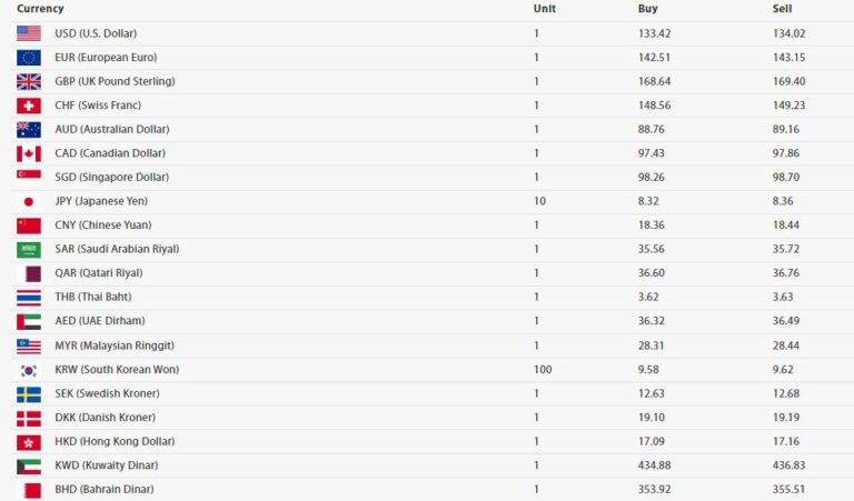 अमेरिकी डलर एकको खरिद दर १३३ रुपैयाँ ४२ पैसा र बिक्री दर १३३ रुपैयाँ ०२ पैसा पुगेको छ। युरो एकको खरिद दर १४२ रुपैयाँ ५१ पैसा र बिक्री दर १४३ रुपैयाँ १५ पैसा रहेको छ।
