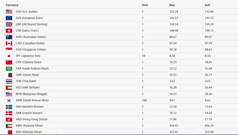 अमेरिकी डलर एकको खरिद दर १३३ रुपैयाँ २४ पैसा र बिक्री दर १३३ रुपैयाँ ८४ पैसा पुगेको छ। युरो एकको खरिद दर १४२ रुपैयाँ ५७ पैसा र बिक्री दर १४३ रुपैयाँ २२ पैसा रहेको छ।